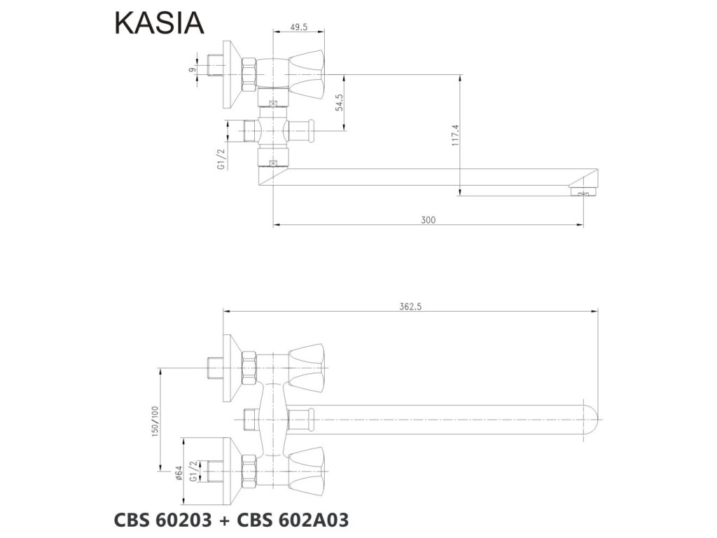 Mereo Nástěnná baterie do byt. jádra, Kasia, 150 mm, s ramínkem 300 mm, bez příslušenství, chrom