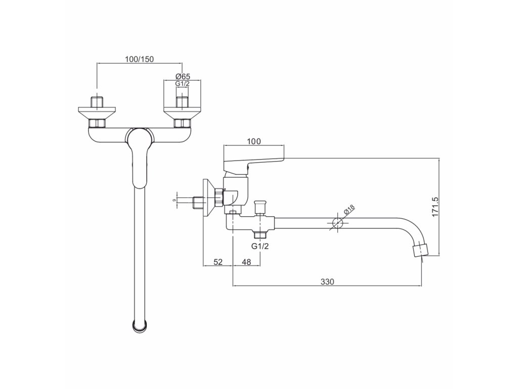 Mereo Nástěnná baterie do byt. jádra, Zuna, 150 mm, s ramínkem ø 18 mm - 330 mm, bez přísluš.