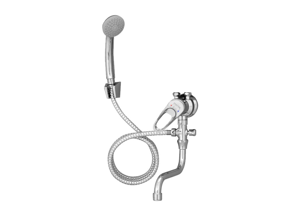 Tato kombinovaná páková baterie pro nízkotl. průtokové ohřívače se vyznačuje spolehlivostí, dlouhou životností, elegantním vzhledem a kvalitní povrchovou úpravou. Použití je možné pouze s průtokovými ohřívači bez zásobníku.Sprchový set: ruční jednopolohová sprcha, držák sprchy, sprchová hadice 150 cm (bílá - chrom)