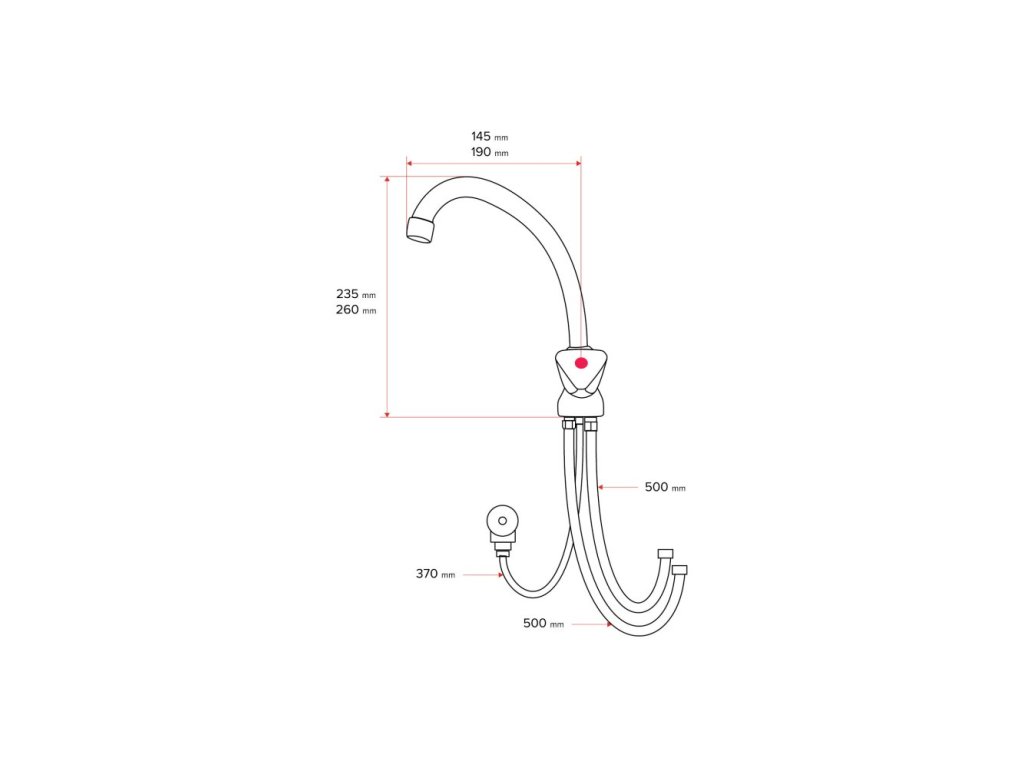 Tato dřezová stojánková baterie pro nízkotl. průtokové ohřívače se vyznačuje spolehlivostí, dlouhou životností, elegantním vzhledem a kvalitní povrchovou úpravou. Použití je možné pouze s průtokovými ohřívači bez zásobníku.- plné otevření již po pootočení o 90°