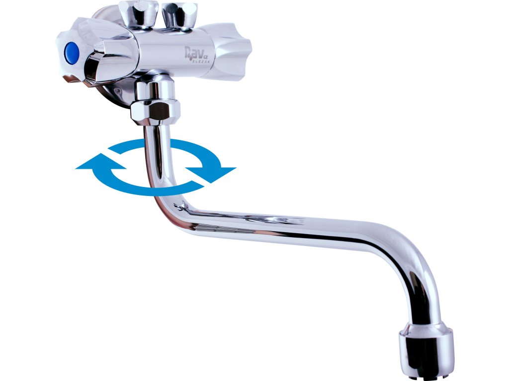 Vodovodní baterie klasická umyvadlová/dřezová ze stěny, s otočným kulatým ramínkem 160 mm pro nízkotlaké ohřívače.