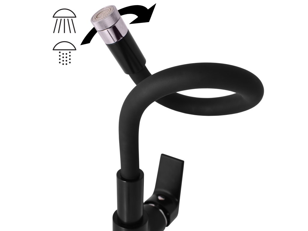 Vodovodní baterie dřezová stojánková s flexibilním otočným ramínkem.
