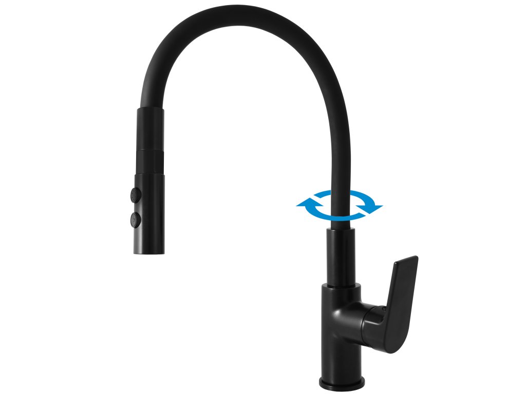 Vodovodní baterie dřezová stojánková s flexibilním otočným ramínkem se sprchou.