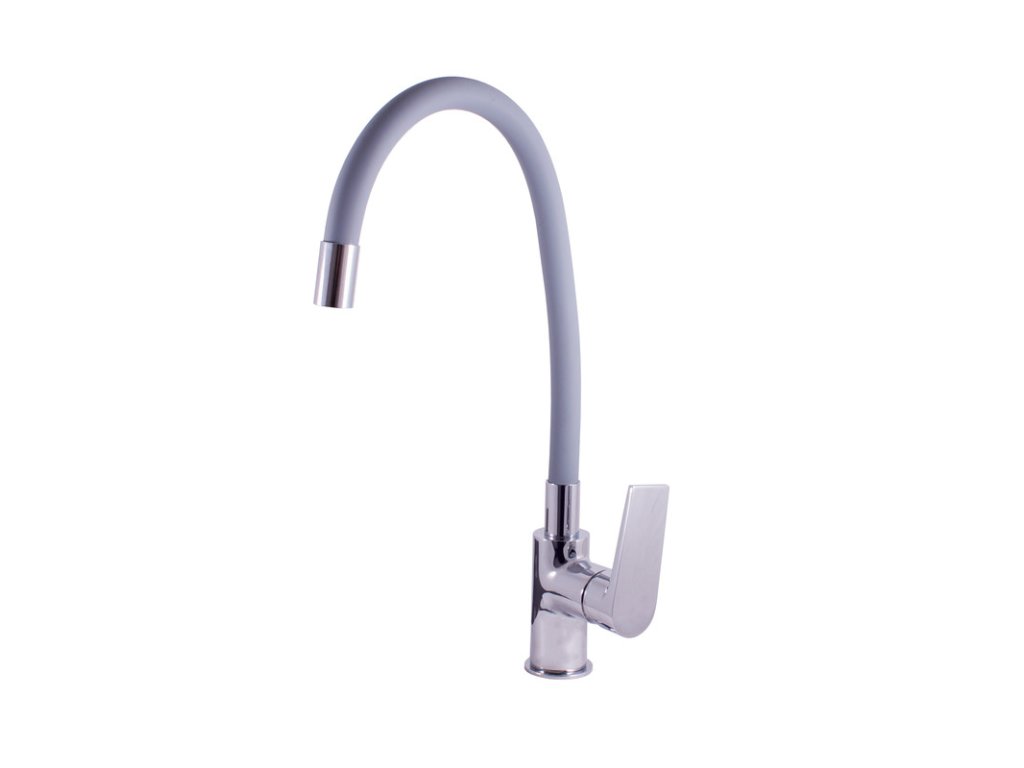 Vodovodní baterie dřezová stojánková s flexibilním otočným ramínkem.