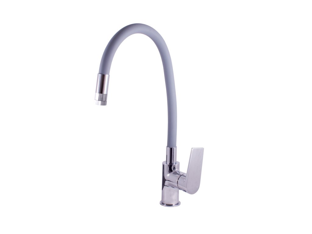 Vodovodní baterie dřezová stojánková s flexibilním otočným ramínkem s dvoupolohovým perlátorem.