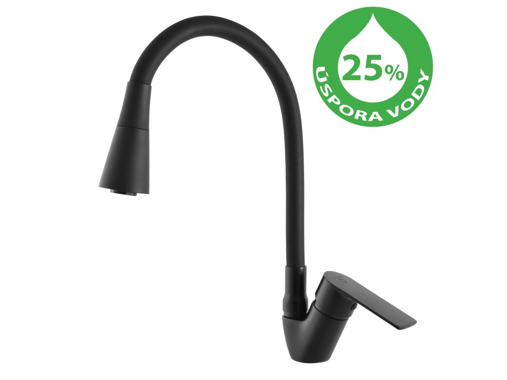 VLTAVA ECO - Dřezová baterie s flexibilním ramínkem, Černá - matná VTE406.0/13CMAT, RAV Slezák