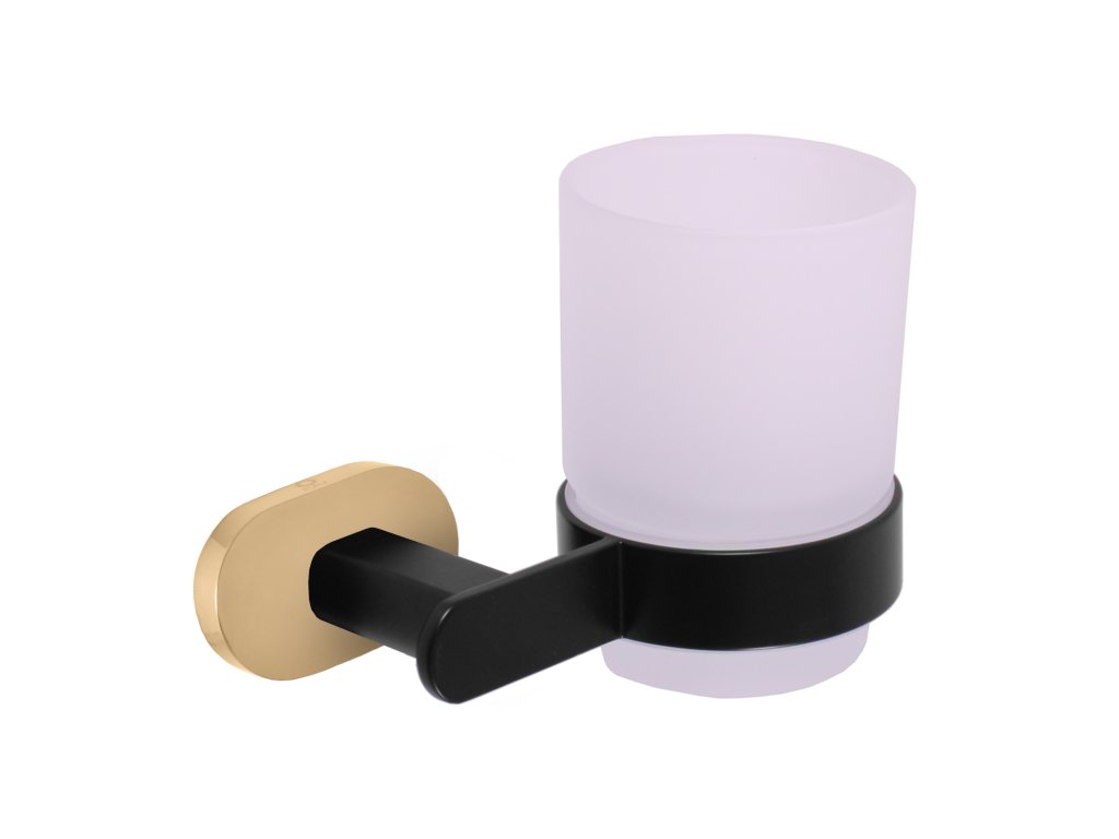 Elegantní černý držák se zlatem s pískovanou skleničkou se skvěle hodí ke všem umyvadlům. Sklenička vám každý den zpříjemní osobní hygienu.