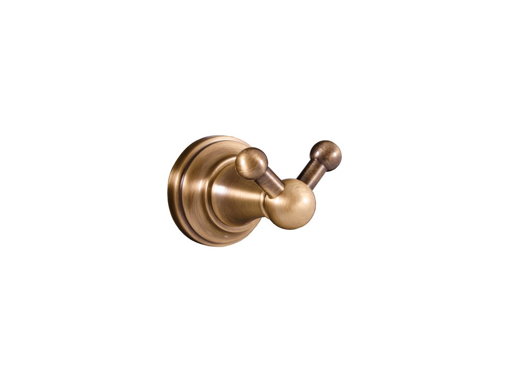 MORAVA RETRO - Koupelnový doplněk Věšáček dvojitý, Stará mosaz (Bronz) MKA0102SM, RAV Slezák