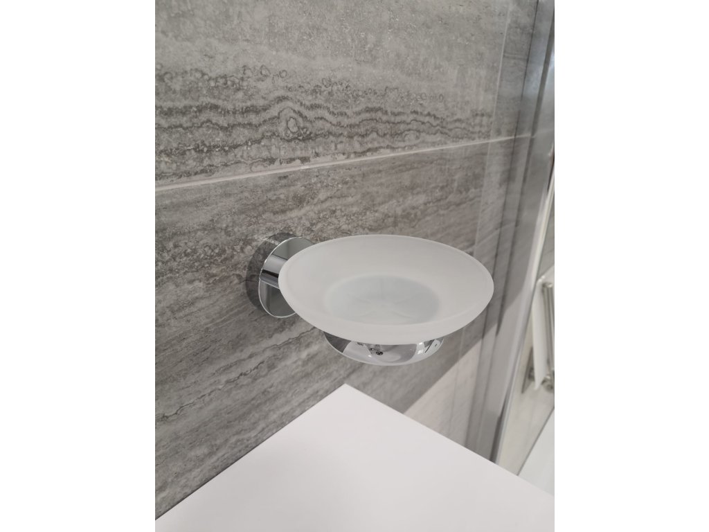Mýdlenka klasického tvaru je oblíbeným funkčním prvkem ke každému umyvadlu. Miska mýdlenky z pískovaného skla zajišťuje snadnou omyvatelnost.