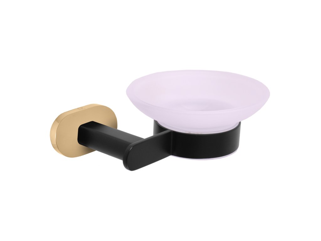 Elegantní černozlatá mýdlenka je oblíbeným funkčním prvkem ke každému umyvadlu. Miska mýdlenky z pískovaného skla zajišťuje snadnou omyvatelnost.