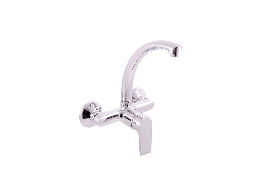 Vodovodní baterie dřezová/umyvadlová nástěnná s otočným oválným ústím.