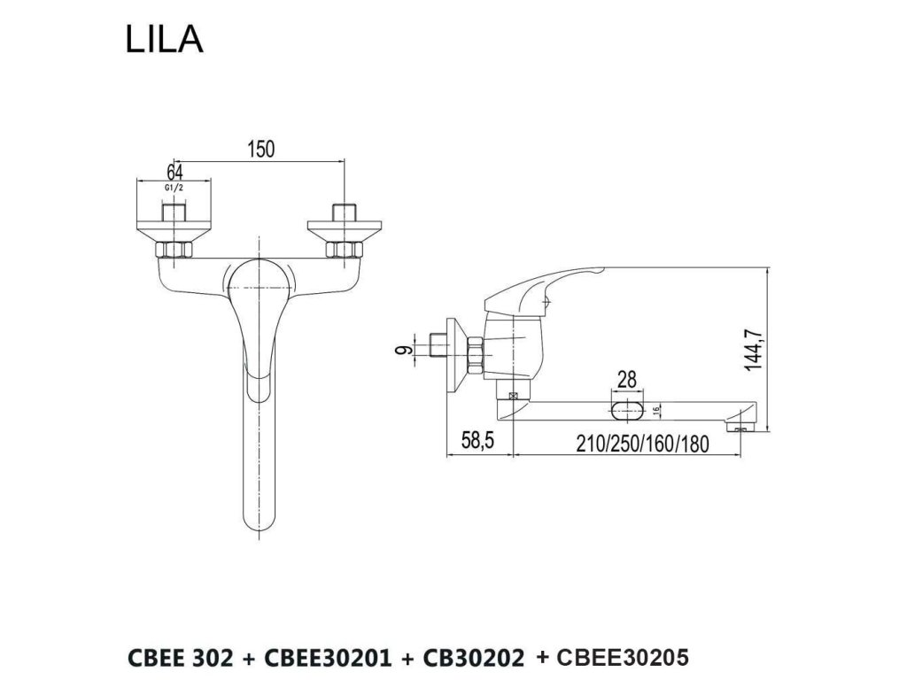 Tato dřezová nástěnná baterie pochází ze série vodovodních baterií Lila, která představuje cenově nenáročné řešení při zachování spolehlivosti a kvality povrchové úpravy. Nástěnné baterie dodáváme v rozteči 100 i 150 mm.- keramická kartuš 35 mm