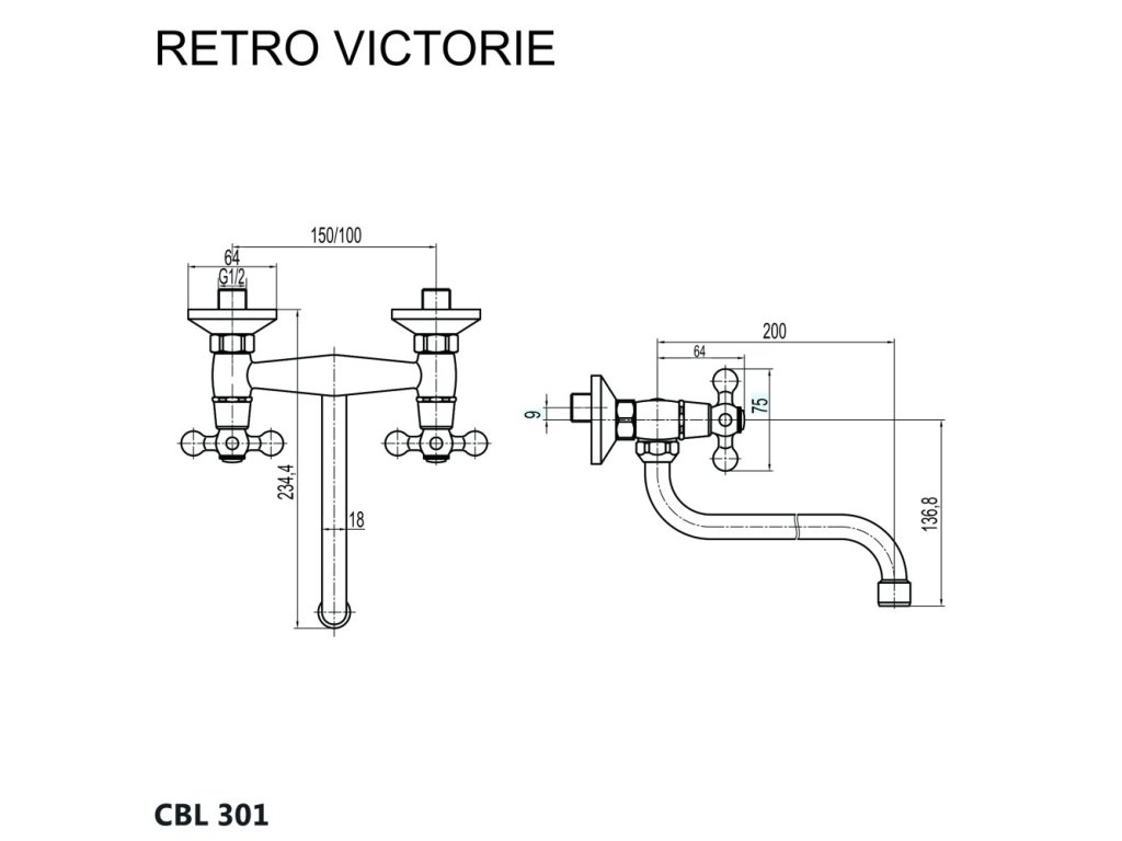 Tato dřezová nástěnná baterie patří do série dvouručkových vodovodních baterií Retro Viktorie, která se vyznačuje zajímavým designem a masivním provedením, vč. příslušenství. Série Retro Viktorie vás ohromí svým elegantním retro vzhledem, dlouhou životností a kvalitní povrchovou úpravou. Baterie má krátký chod ovládací hlavice, k plnému otevření stačí otočení o 90°.- baterie jsou dodávány s keramickými vršky