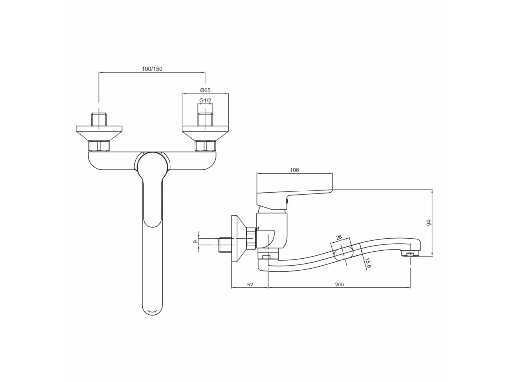 Mereo Dřezová nástěnná baterie, Zuna, 150 mm, s ramínkem plochým vyhnutým 200 mm, chrom