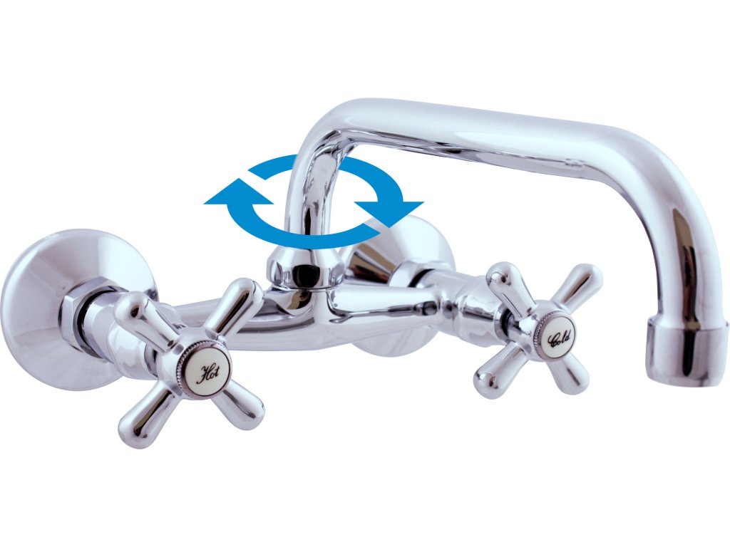 Vodovodní baterie dřezová nástěnná s otočným horním ústím.