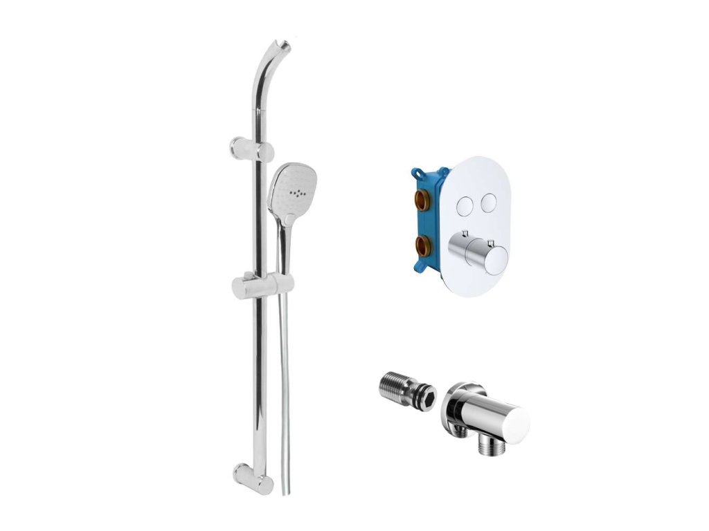 Mereo Vanový set s termostatickou podomítkovou tlačítkovou baterií - 2-cestná - oválný kryt
