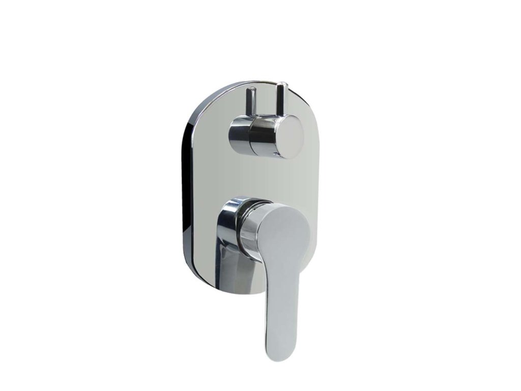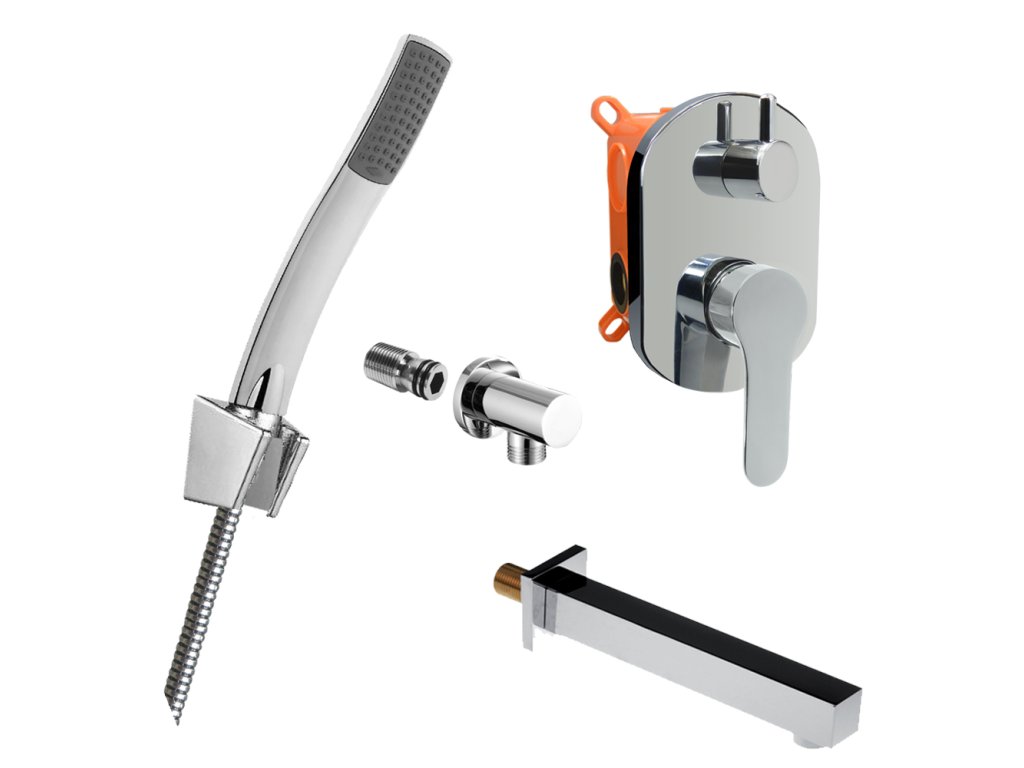 Dvoucestná podomítková baterie s keramickým přepínačem, Mbox, oválný kryt, vývod, nerezová dvouzámková hadice 150 cm, držák sprchy, jednopolohová ruční sprcha, vanové napouštěcí ramínko.10 let záruka na baterii.