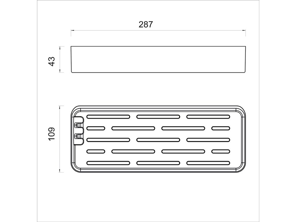 Obdélníková police s hlubším dnem, s háčky.Materiál: plast.