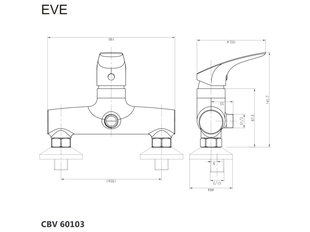 Tato sprchová nástěnná baterie, patří do nejnovější řady vodovodních baterií Eve, která vyniká spojením elegantního těla a tvarově jednoduché a přesto efektní páky.- keramická kartuš 35 mm