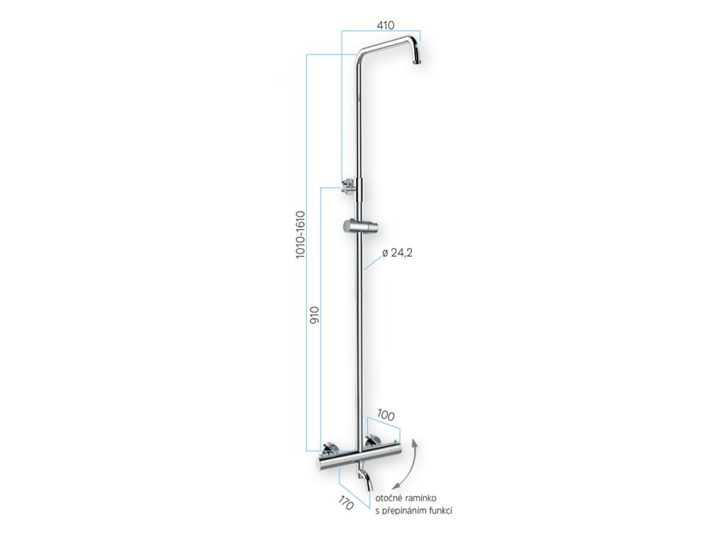 - Anti-twist: systém proti překroucení hadice - pro správnou funkci připojte delší kónusovou koncovku na ruční sprchu.