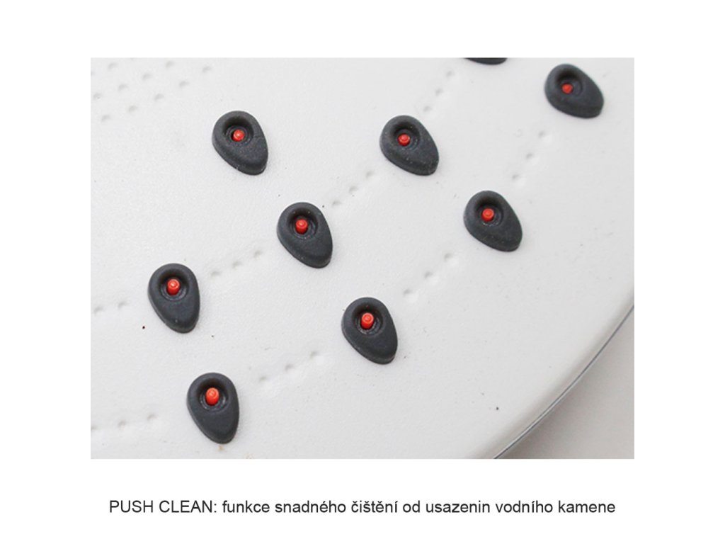 Třípolohová sprchová hlavice se vyznačuje moderním designem, vysokou variabilitou a především umožňuje téměř libovolnou kombinaci s příslušenstvím sprchového programu. Tato hlavice disponuje funkcí Push Clean pro ještě snadnější čištění. Funkce spočívá v tom, že páčku posunete do polohy vlevo a z trysek vyjedou červené tvrdé bodlinky, které vytlačí ven všechny usazeniny. Ty pak jednoduše spláchnete puštěním vody. Sprcha je osazena standardním závitem 1/2" pro připojení na sprchovou hadici.