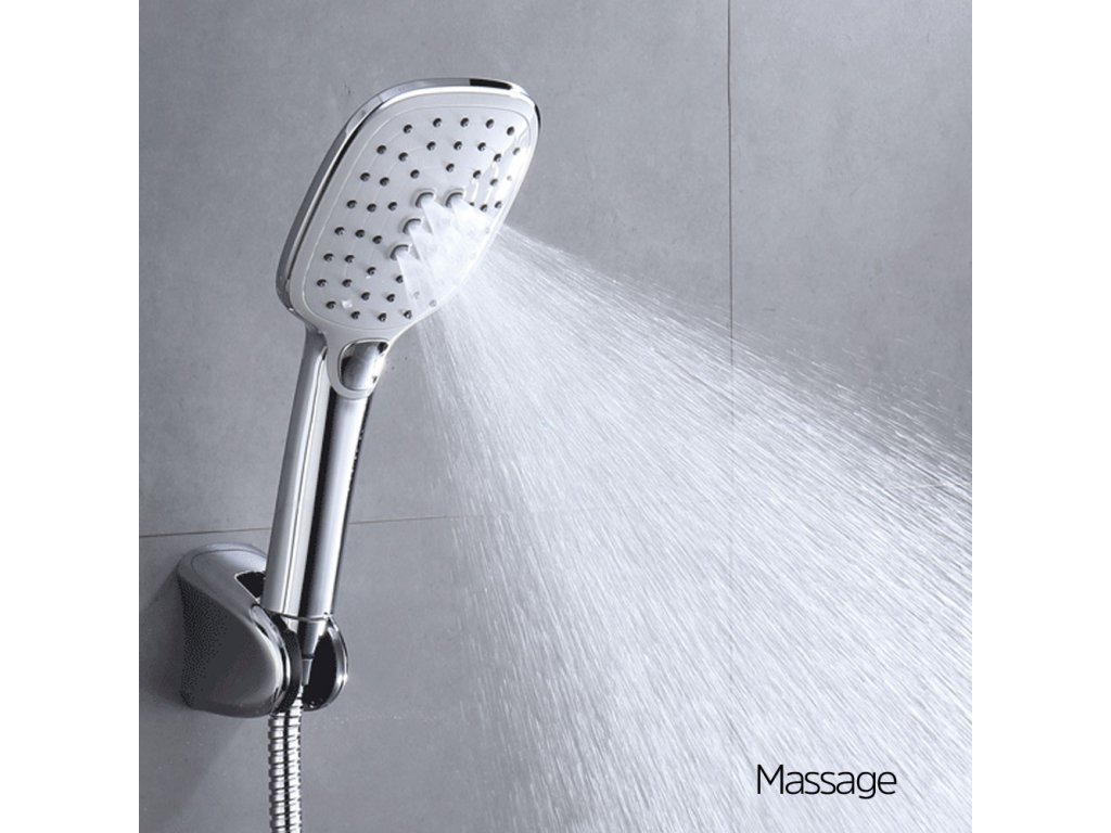 Třípolohová sprchová hlavice se vyznačuje moderním designem, vysokou variabilitou a především umožňuje téměř libovolnou kombinaci s příslušenstvím sprchového programu. Sprcha je osazena standardním závitem 1/2" pro připojení na sprchovou hadici.