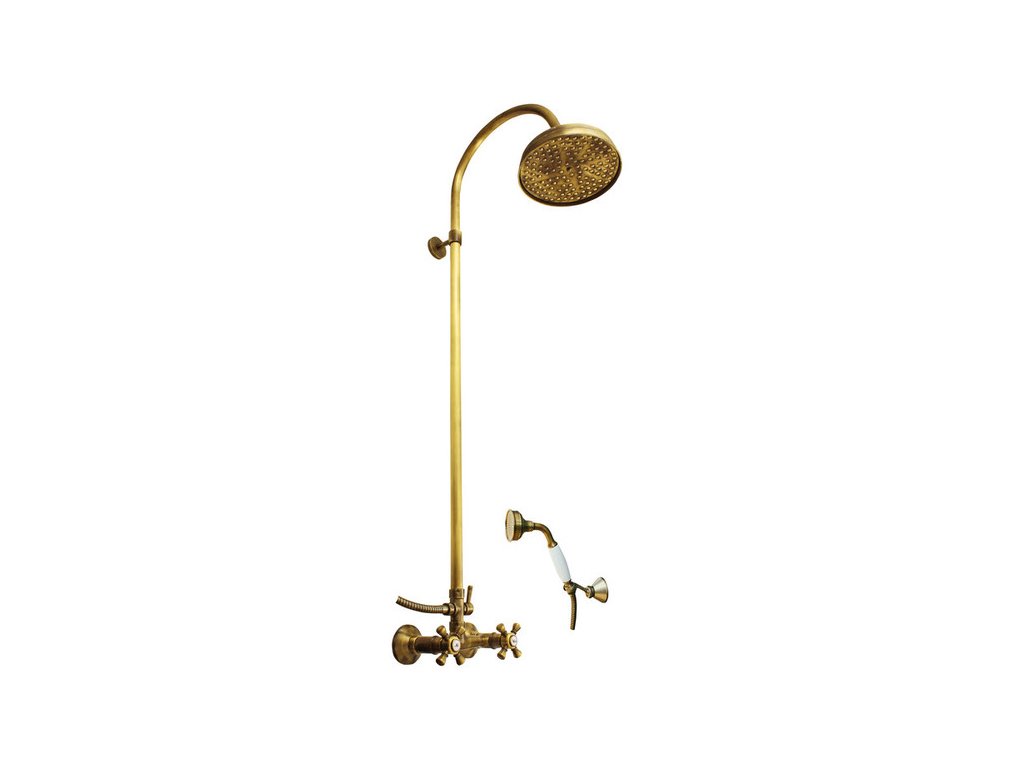 Vodovodní baterie sprchová MORAVA STARÁ MOSAZ s hlavovou a ruční sprchou se skládá z:
