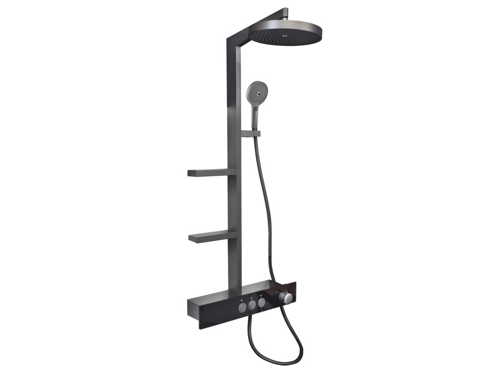 Vodovodní baterie sprchová s pevnou tyčí a hlavovou a ruční sprchou, police Metal Grey.