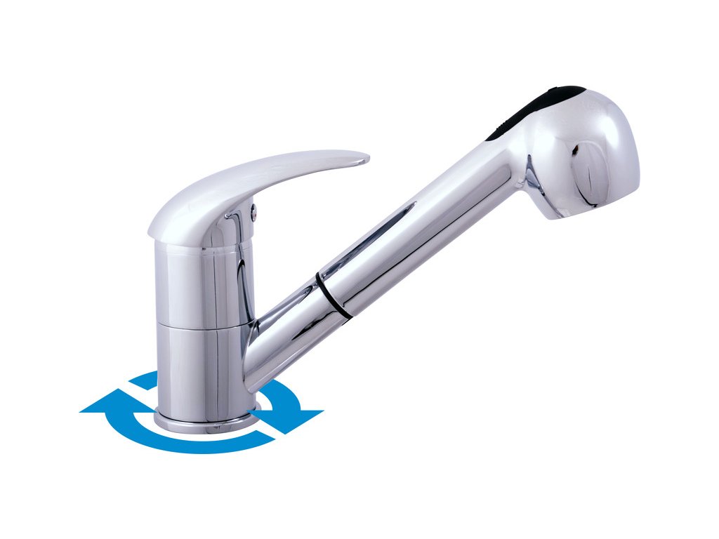 Vodovodní baterie dřezová stojánková s vytahovací sprchou.