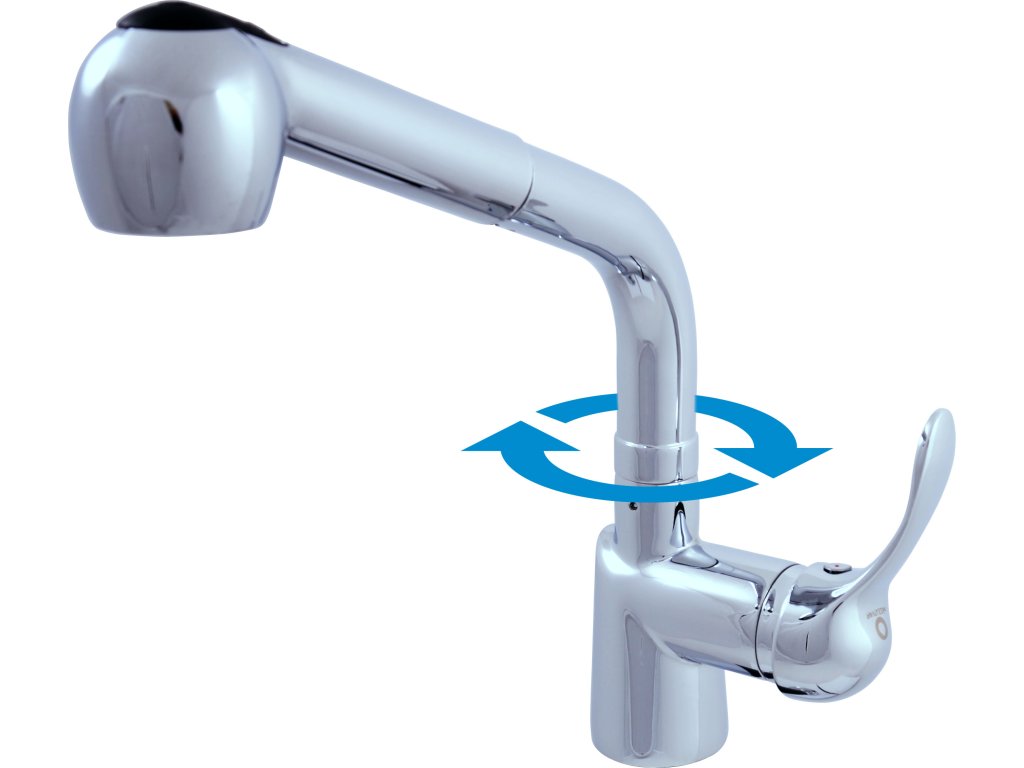 Vodovodní baterie dřezová stojánková s vytahovací sprchou.
