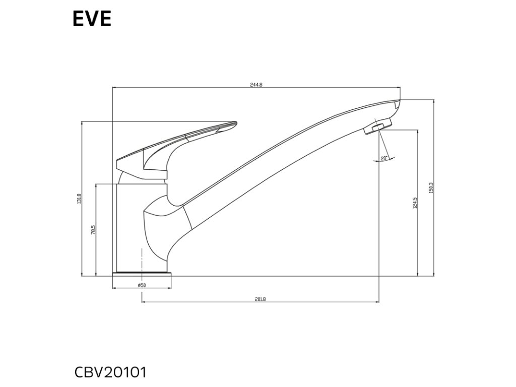 Tato dřezová stojánková baterie, patří do řady vodovodních baterií Eve, která vyniká spojením elegantního těla a tvarově jednoduché a přesto efektní páky.- keramická kartuš 35 mm