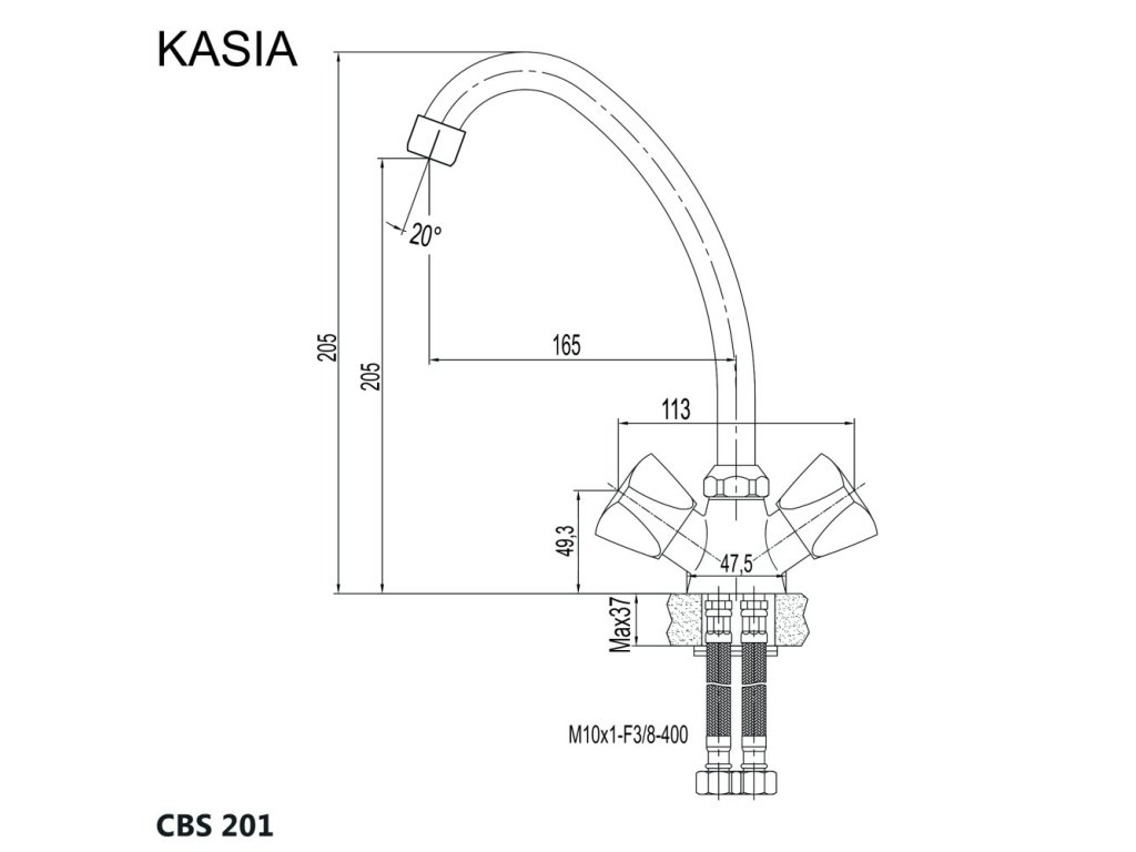 Mereo Dřezová stojánková baterie, Kasia, výška 250 mm, chrom