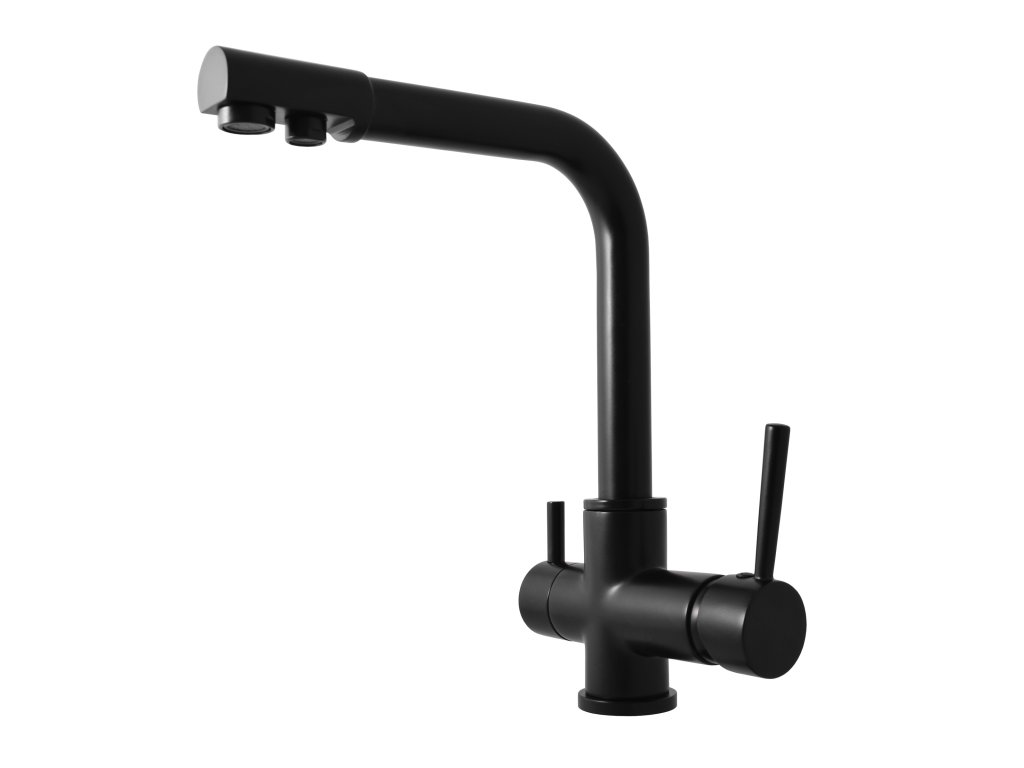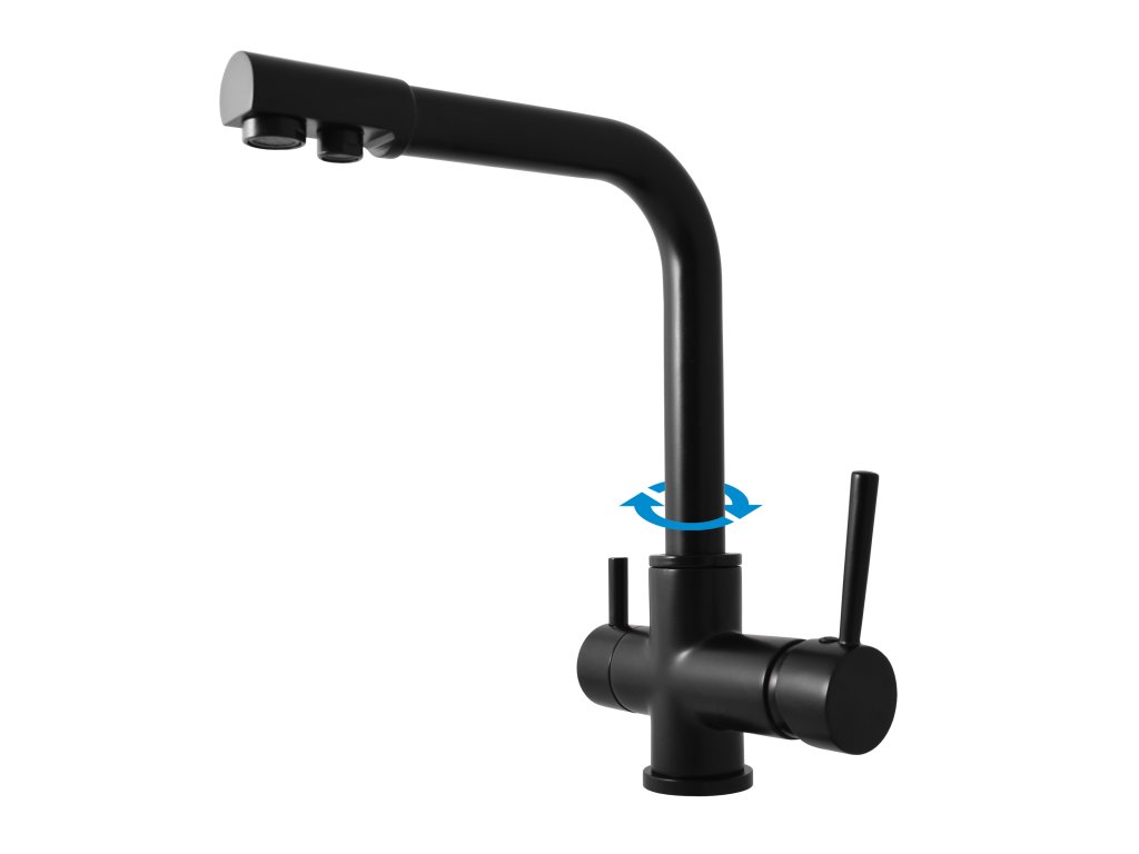 Vodovodní baterie dřezová stojánková s otočným ústím - pro dvě vody - pitnou a užitkovou - černá matná.