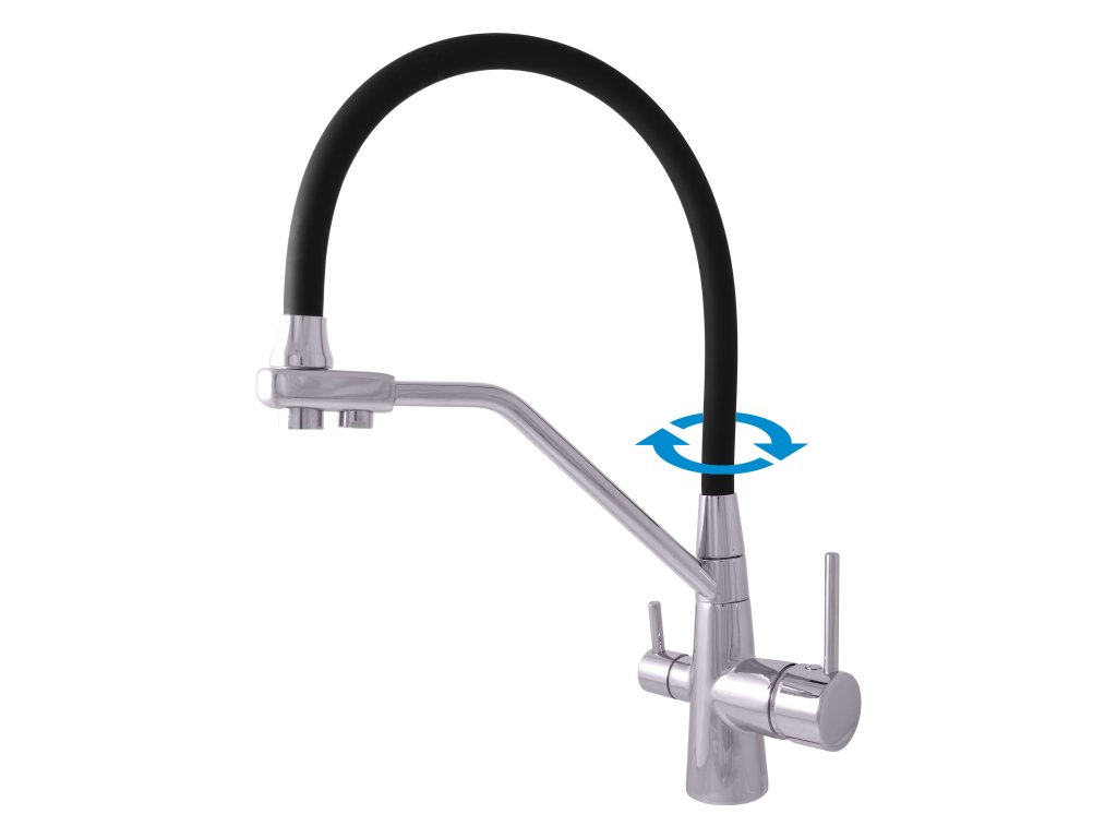 Vodovodní baterie dřezová stojánková s otočným flexibilním ramínkem - pro dvě vody - pitnou a užitkovou.