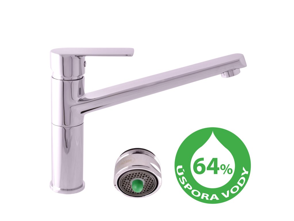 Spořící vodovodní baterie dřezová stojánková s otočným ústím.