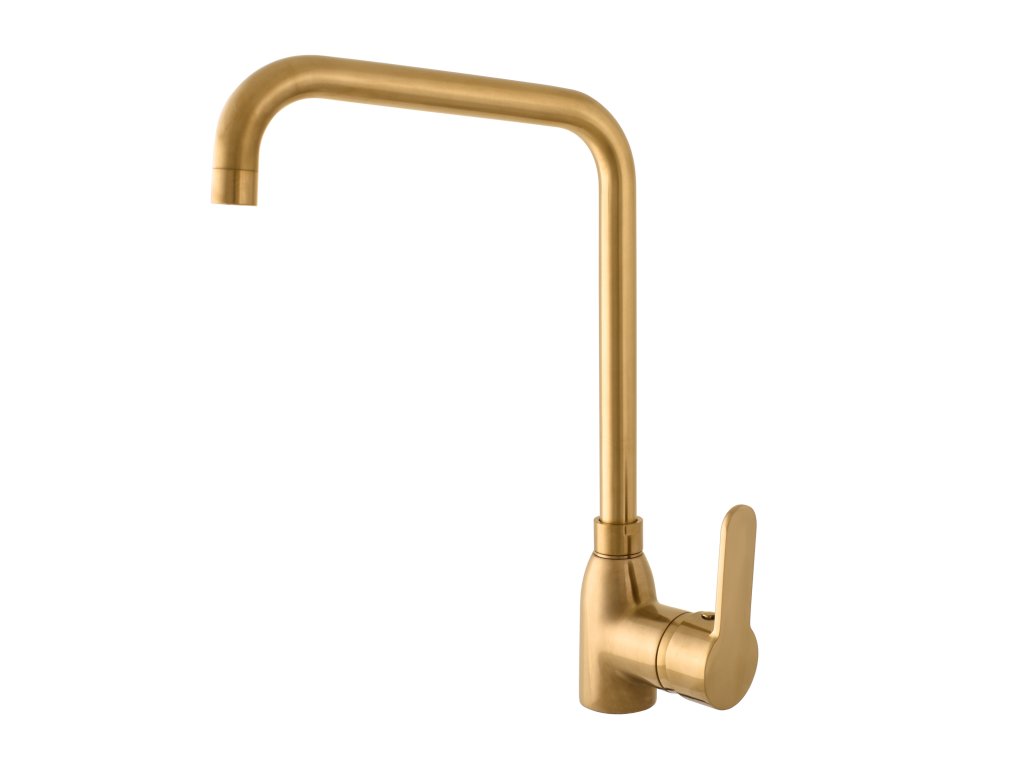 Vodovodní baterie dřezová stojánková s otočným ústím, zlatá kartáčovaná.
