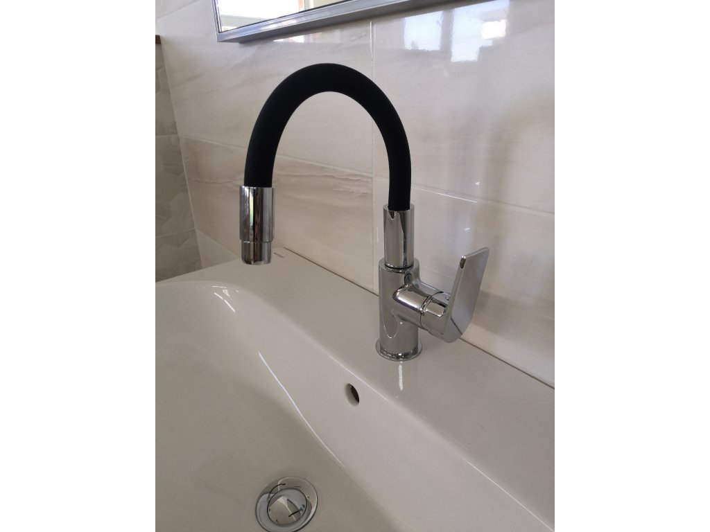 Vodovodní baterie umyvadlová stojánková s flexibilním otočným ramínkem.