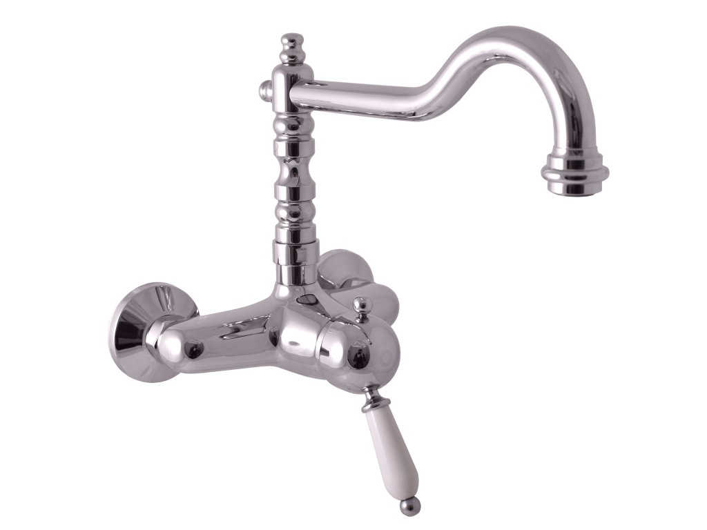 Vodovodní baterie umyvadlová/dřezová nástěnná s kulatým otočným ramínkem.