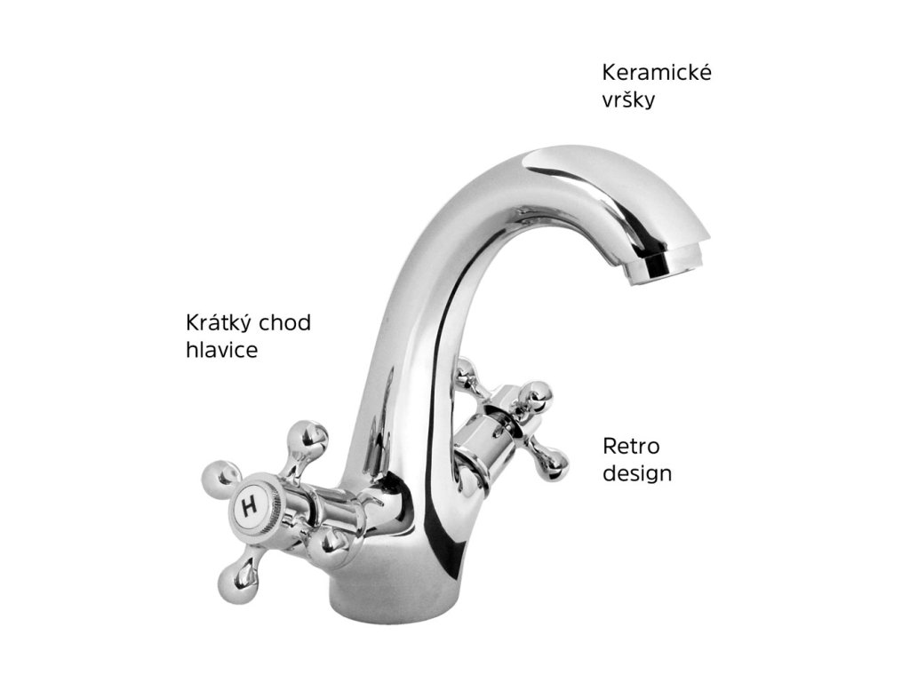 Tato umyvadlová stojánková baterie, patří do série dvouručkových vodovodních baterií Retro Viktorie, která se vyznačuje zajímavým designem a masivním provedením, vč. příslušenství. Série Retro Viktorie vás ohromí svým elegantním retro vzhledem, dlouhou životností a kvalitní povrchovou úpravou. Baterie má krátký chod ovládací hlavice, k plnému otevření stačí otočení o 90°.- baterie jsou dodávány s keramickými vršky