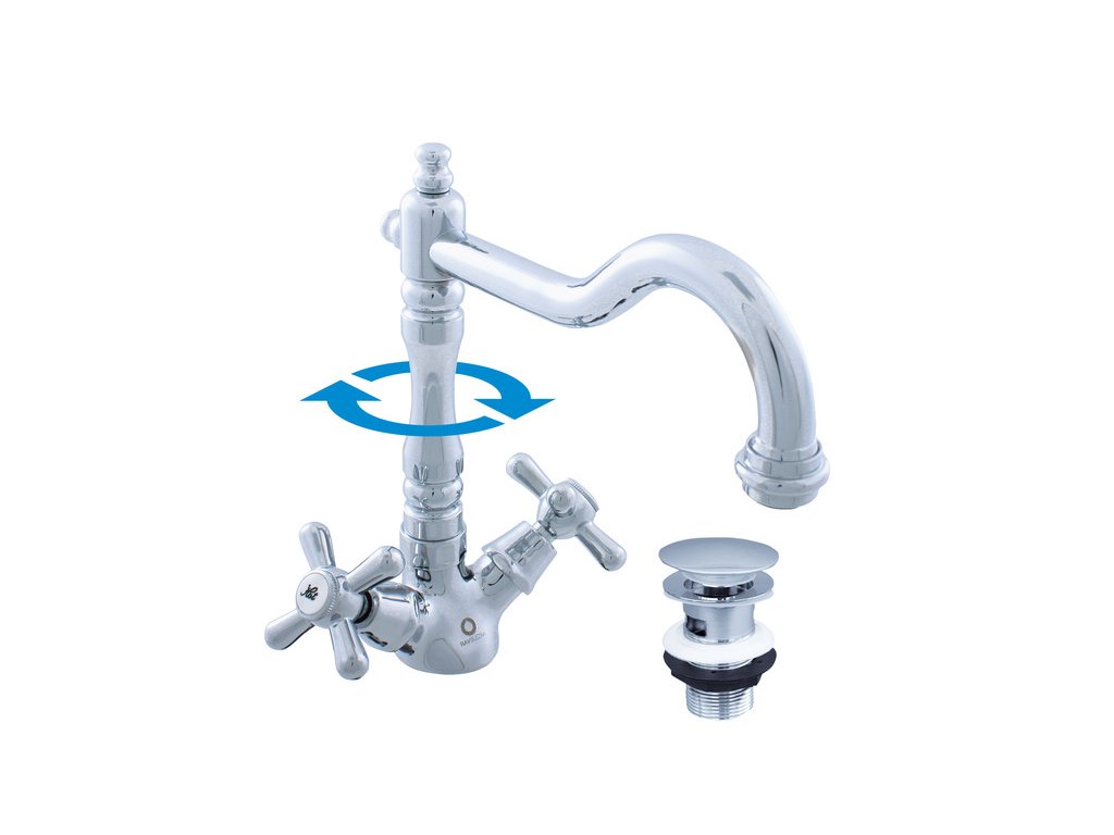 Vodovodní baterie umyvadlová stojánková s otočným ústím s výpustí CLICK-CLACK.