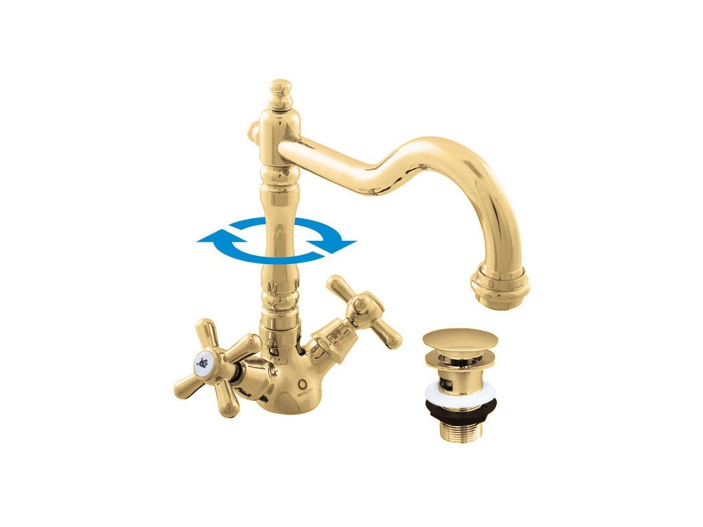 MORAVA RETRO - Umyvadlová baterie s výpustí, Zlatá lesklá MK121.0/8Z, RAV Slezák