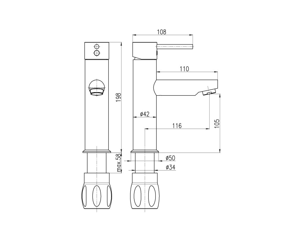 Vodovodní baterie umyvadlová stojánková bez otvírání odpadu.