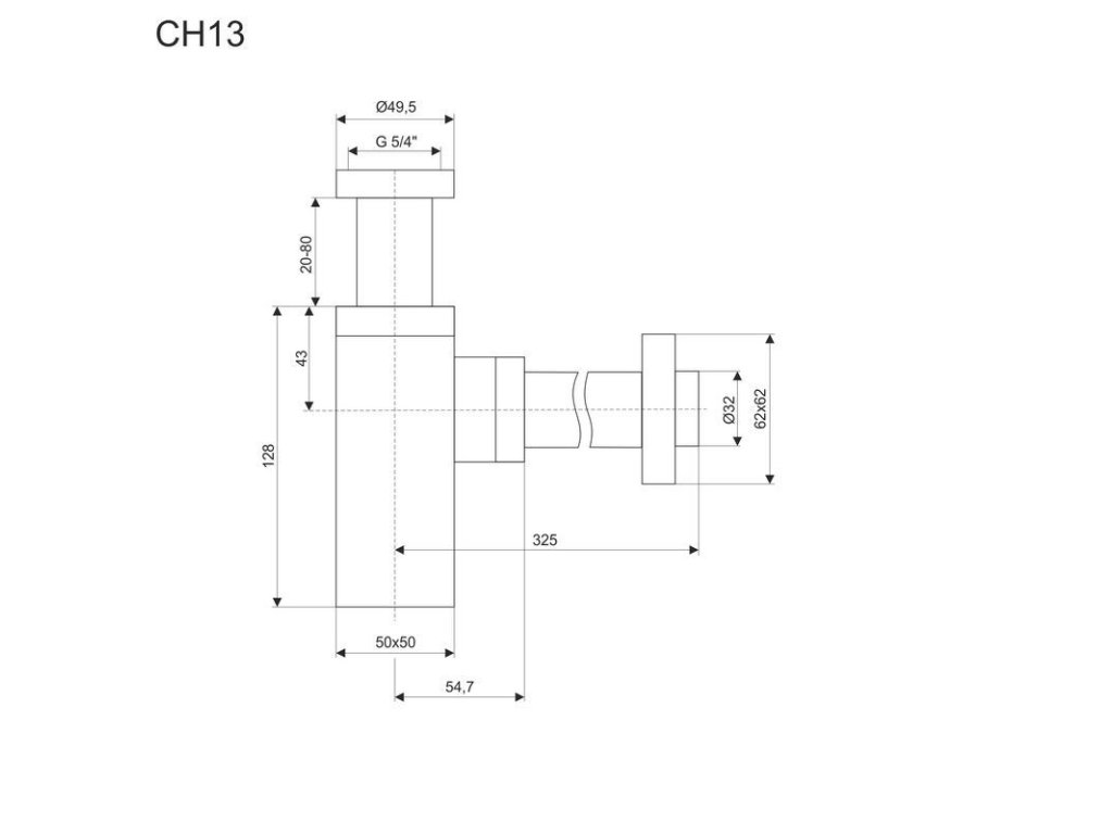 Celokovový chromovaný sifon s převlečenou maticí v hranatém designu.Vyroben z pochromované mosazi.
