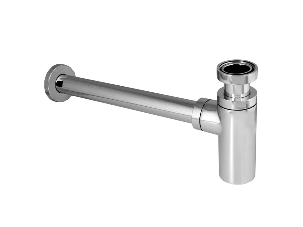 Celokovový chromovaný sifon s převlečenou maticí v kulatém designu.Vyroben z pochromované mosazi.