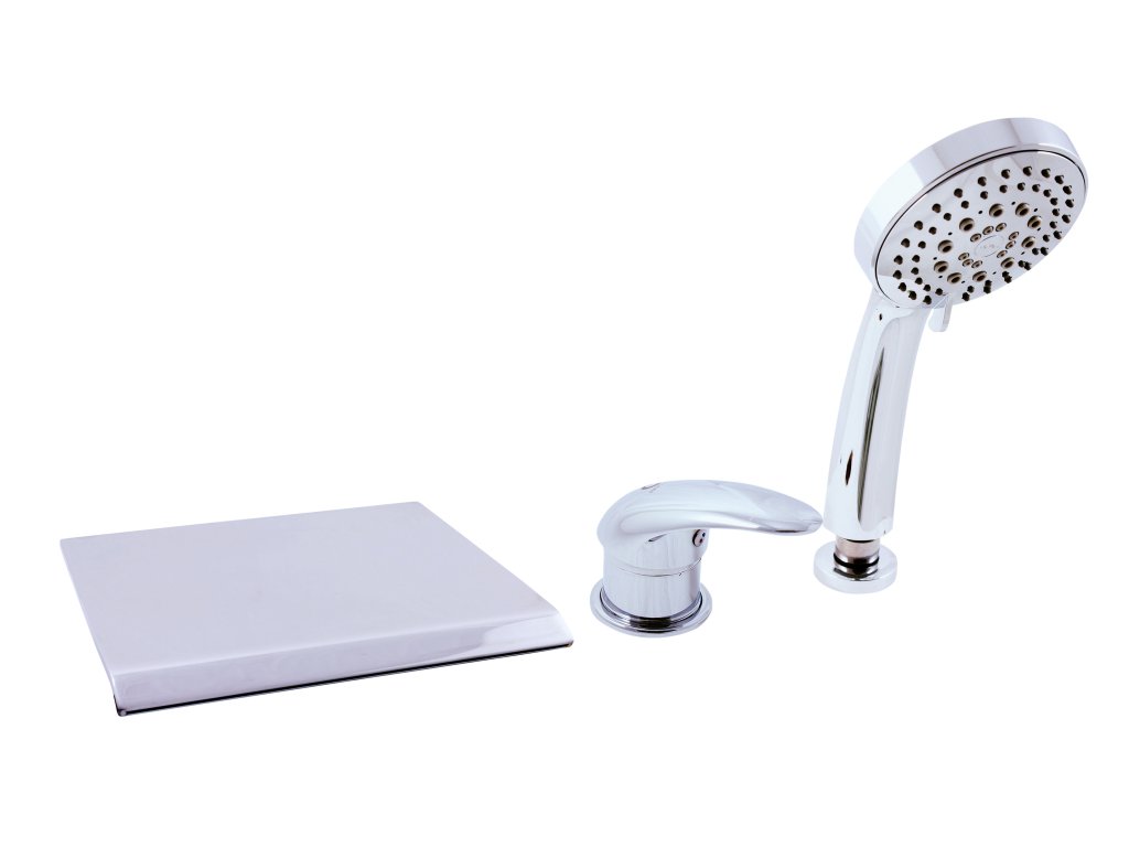 Vodovodní baterie vanová stojánková tříotvorová s přepínačem v mixu, samonavíjecí sprchou a 2m hadicí.