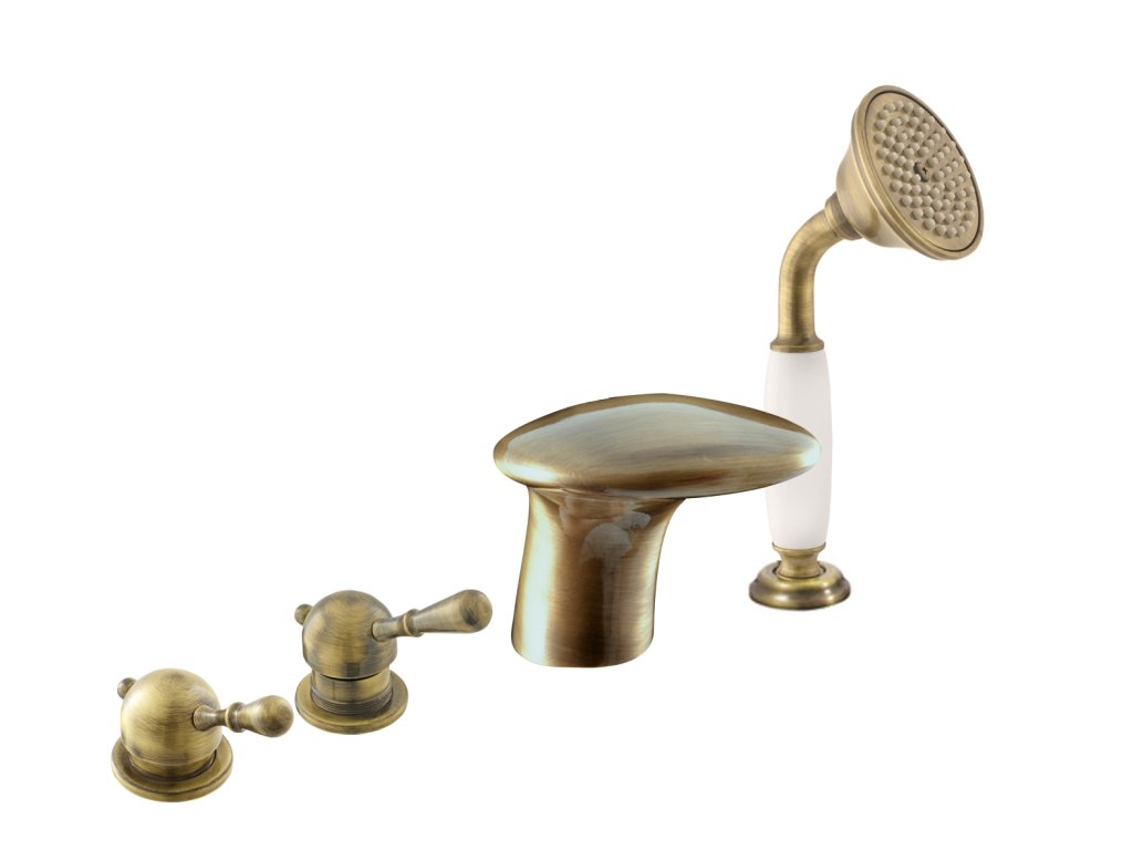 LABE - Vanová baterie 4-otvorová, vodopád, Stará mosaz (Bronz) L471.0PSM, RAV Slezák