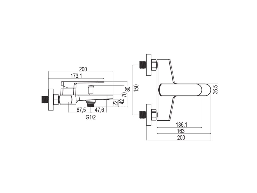 Mereo Vanová nástěnná baterie, Mada, 150 mm, bez příslušenství, chrom