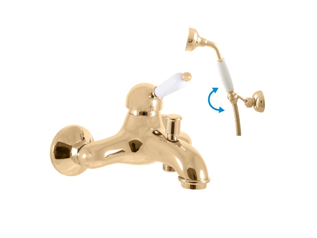 Vodovodní baterie vanová nástěnná se sprchou a otočným držákem.