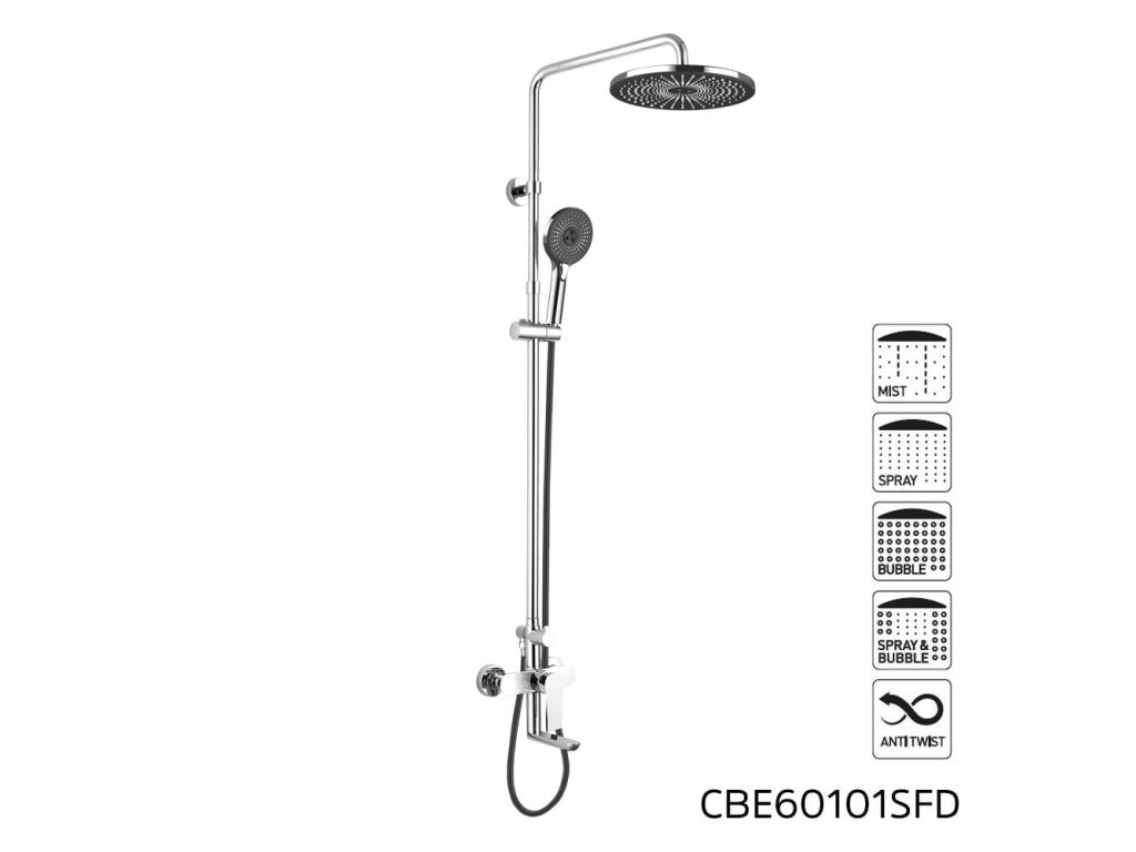 - Anti-twist: systém proti překroucení hadice - pro správnou funkci připojte delší kónusovou koncovku na ruční sprchu.