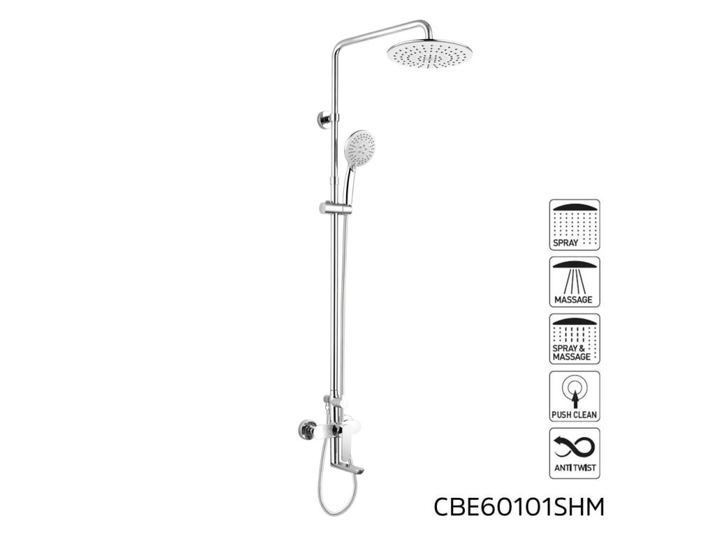 - Anti-twist: systém proti překroucení hadice - pro správnou funkci připojte delší kónusovou koncovku na ruční sprchu.